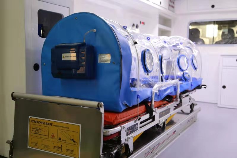 據(jù)記者了解,與一般救護(hù)車不同,負(fù)壓救護(hù)車搭載了一臺負(fù)壓層流救治單元,能夠使車內(nèi)空氣無害化處理后排出,同時負(fù)壓救護(hù)車還配備呼吸機、除顫儀、心電監(jiān)護(hù)儀等全套搶救設(shè)備,安裝紫外線消毒燈、中心供氧接口等,具有良好的隔離性、防腐性、通風(fēng)性、耐菌性,能夠?qū)崿F(xiàn)“安全隔離”。正因為如此,負(fù)壓救護(hù)車被稱為“移動的N95口罩”。
