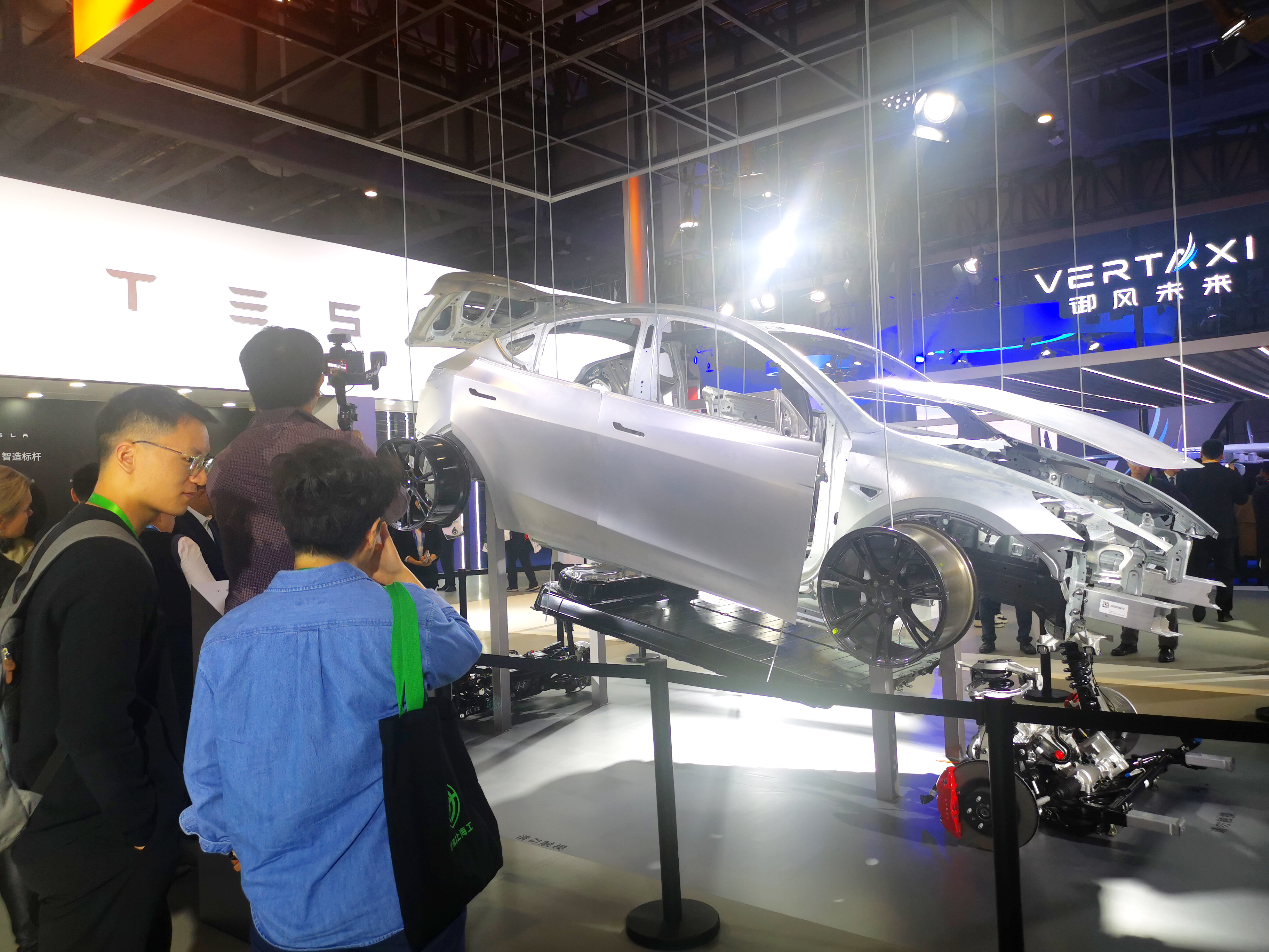 觀眾圍觀“拆解”版特斯拉汽車 郭冀川/攝