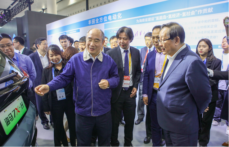 12月7日下午,中國科學技術協(xié)會主席、世界新能源汽車大會主席萬鋼,海南省委書記馮飛、省長劉小明等領導參觀了各企業(yè)展臺。在豐田與海馬汽車的聯(lián)合展臺,萬鋼主席對豐田與海馬汽車的合作表示贊許,并了解了海馬氫燃料電池汽車7X-H的情況,表示海南島應該有自己的氫能汽車。