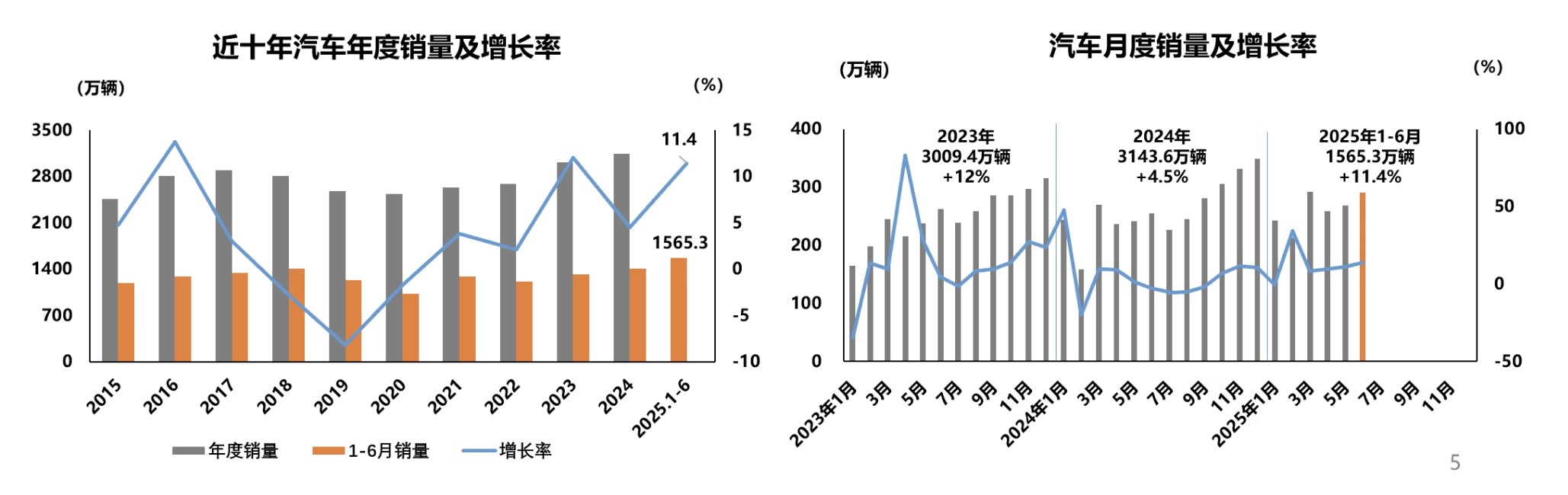 今年上半年,中國(guó)汽車產(chǎn)銷分別完成1562.1萬輛和1565.3萬輛,同比分別增長(zhǎng)12.5%和11.4%,均創(chuàng)歷史新高。其中6月份,汽車產(chǎn)銷分別完成279.4萬輛和290.4萬輛,環(huán)比分別增長(zhǎng)5.5%和8.1%,同比分別增長(zhǎng)11.4%和13.8%。