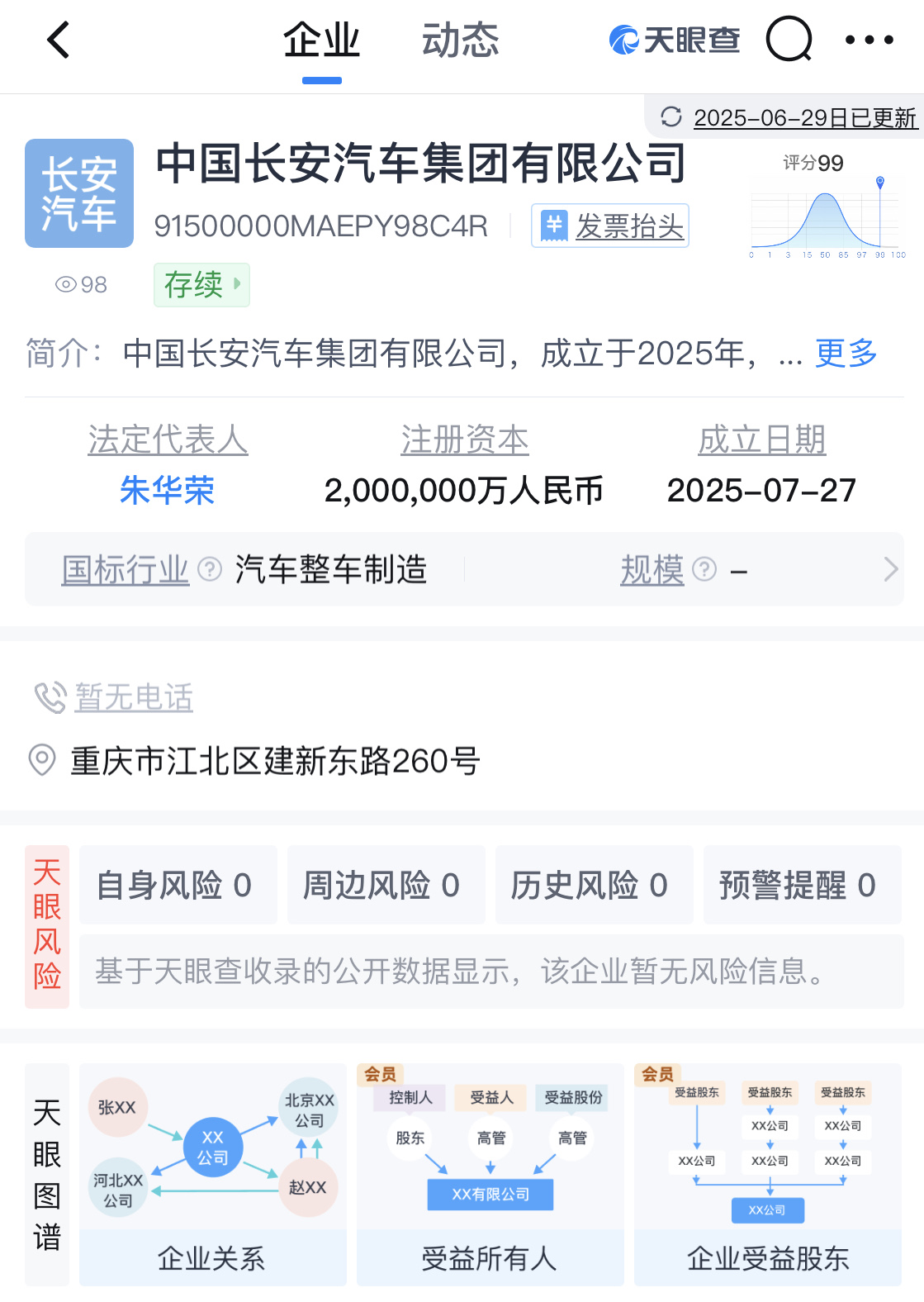 天眼查App顯示,7月27日,中國長安汽車集團有限公司成立,注冊資本200億元,法定代表人為朱華榮,登記地位于重慶市。公司經(jīng)營范圍涵蓋汽車銷售、新能源汽車整車銷售、汽車零部件研發(fā)等。