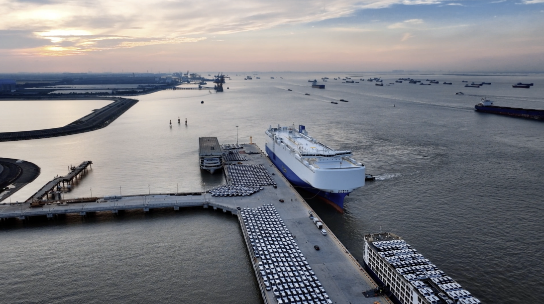 圖為上海海通國際汽車碼頭,奇瑞出口車輛整裝待發(fā)