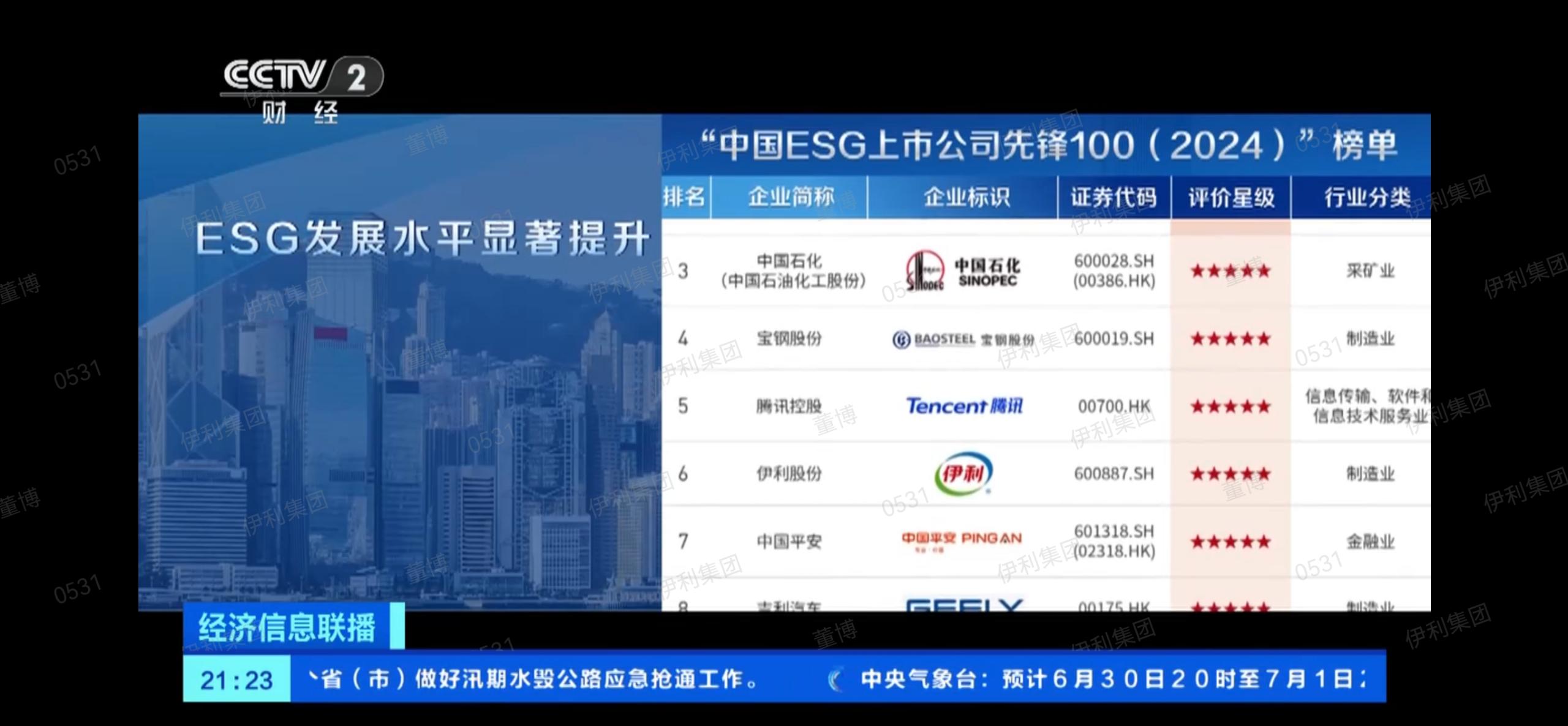 6月30日,中央廣播電視總臺在北京梅地亞中心舉行《2024年度ESG行動報告》發(fā)布活動,伊利集團、華潤集團、中國移動、中國石化等受邀參加。發(fā)布會上,伊利集團再次入選央視“中國ESG上市公司先鋒100”榜單,蟬聯(lián)中國食品行業(yè)榜首,ESG表現(xiàn)處于五星級水平。