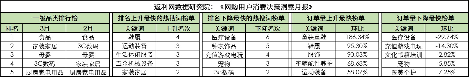 日前,返利網(wǎng)數(shù)據(jù)研究院首度發(fā)布《網(wǎng)購用戶消費(fèi)決策洞察月報》,基于2020年3月份返利網(wǎng)平臺的全網(wǎng)數(shù)據(jù),從站內(nèi)搜索、交易行為、訂單分布等維度,對網(wǎng)購用戶的消費(fèi)決策行為展開分享和洞察。
