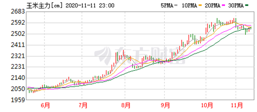 國內(nèi)玉米主力合約一路走高(供圖:東方財富)