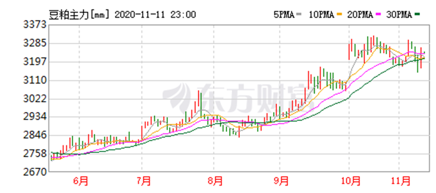 國內(nèi)豆粕主力合約一路走高(供圖:東方財富)