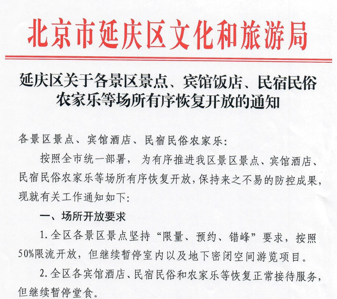 5月28日,北京市召開的疫情防控工作第348場新聞發(fā)布會上,有關(guān)部門發(fā)布了北京門頭溝、平谷、懷柔、密云、延慶區(qū)酒店民宿農(nóng)家樂恢復(fù)正常接待服務(wù)。