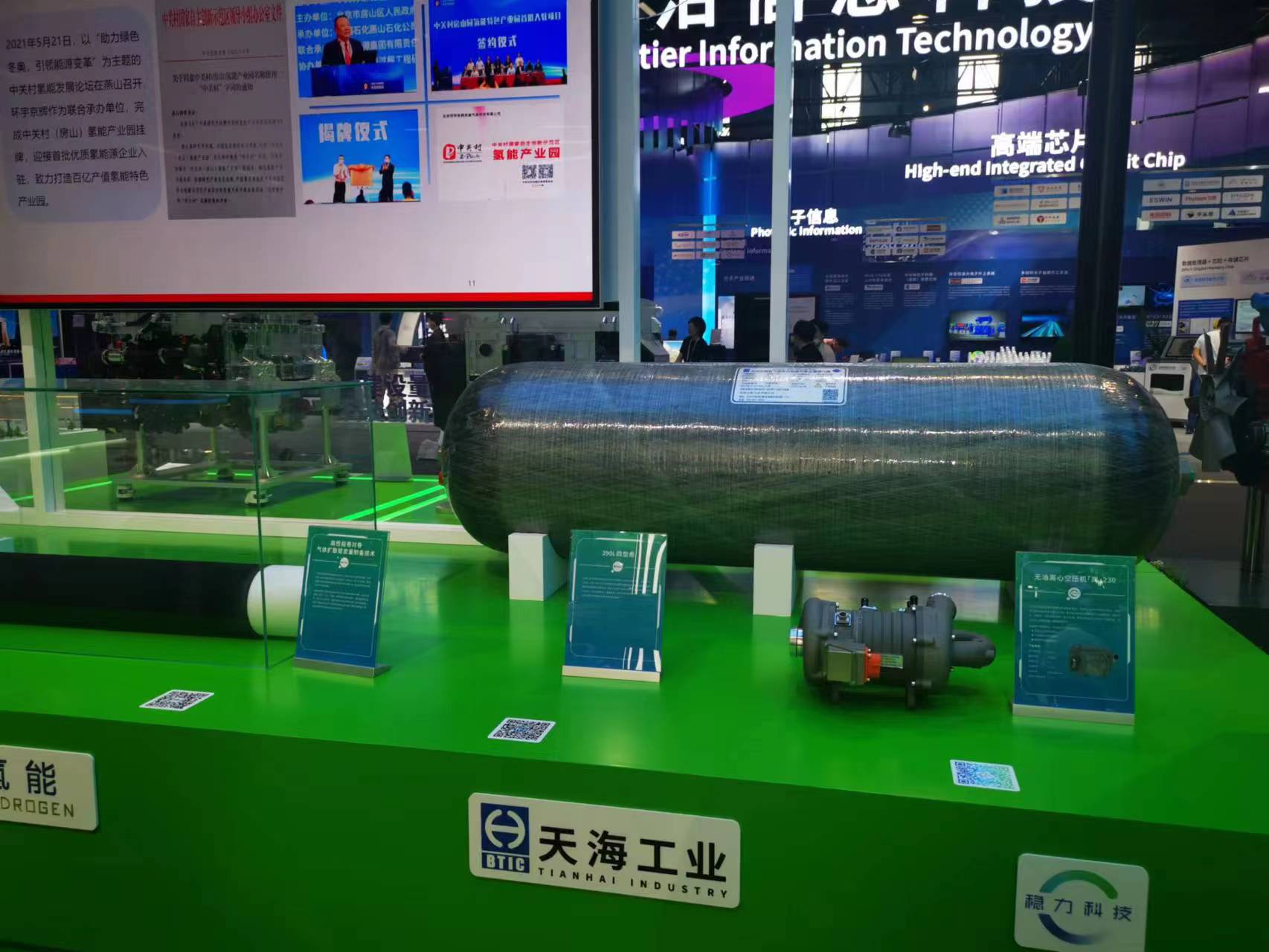 在論壇的產(chǎn)業(yè)展區(qū),多家氫能企業(yè)展示了最新的技術(shù)和產(chǎn)品。其中,北京天海工業(yè)有限公司的工作人員向記者介紹,公司是世界三大氣瓶制造商之一,擁有完全自主知識產(chǎn)權(quán)的車載儲氫氣瓶產(chǎn)品,為氫燃料電池汽車提供了輕量化車載供氫系統(tǒng)新選擇。新研氫能源科技有限公司展臺負(fù)責(zé)人向記者介紹,公司此次帶來了氫能在船舶動力領(lǐng)域的應(yīng)用。
