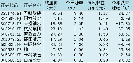 表:今日工程機械板塊漲幅前十個股一覽