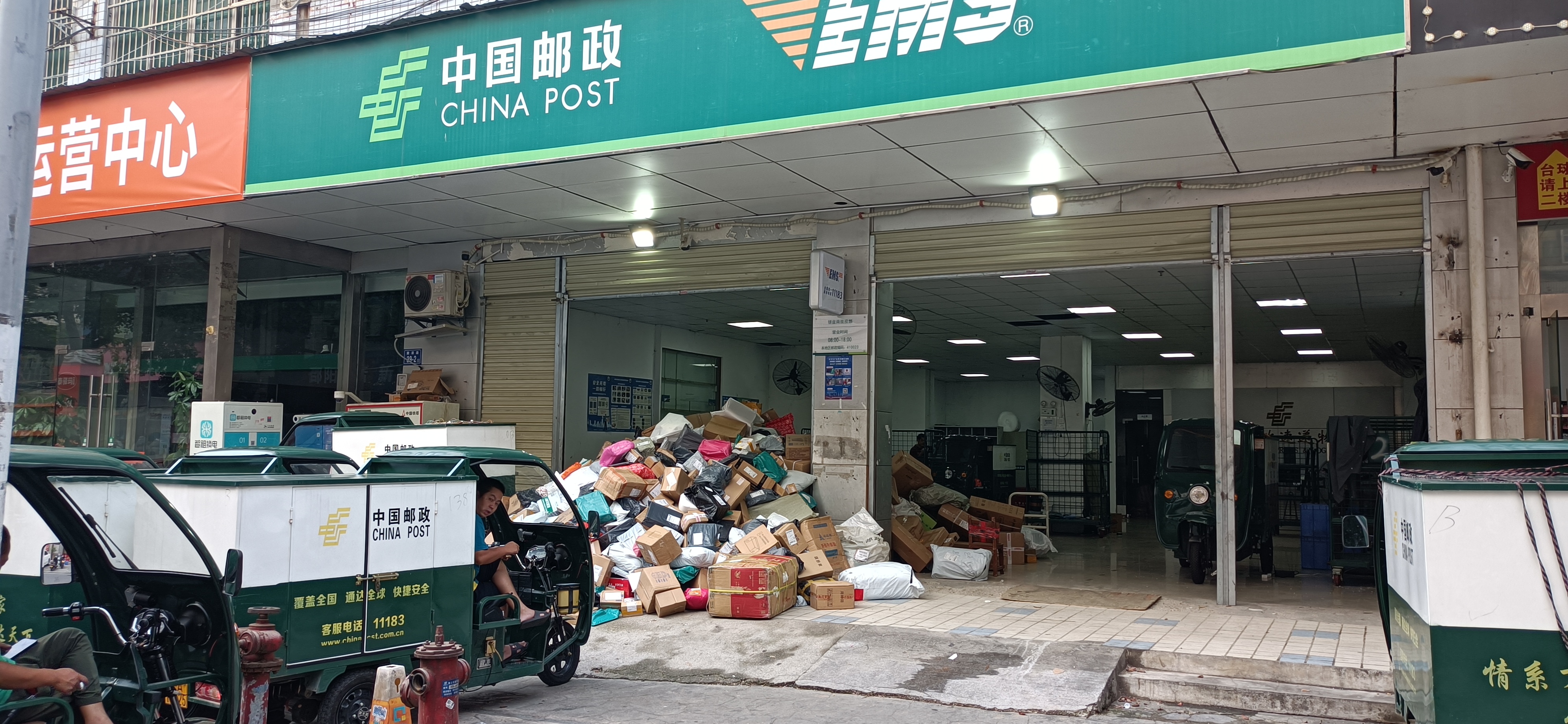 9月6日清晨,天空還在飄著朦朧細(xì)雨。位于長沙河西的中國郵政EMS的物流分揀點(diǎn),快遞包裹堆成了一座小山。分揀工人們戴著手套,一邊大聲喊出目的地,一邊開始了裝車工作。得知分揀點(diǎn)人手不夠,騎手們在車上就打起電話開始搖人前來幫忙。