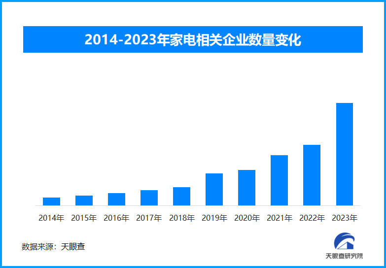 天眼查專(zhuān)業(yè)版數(shù)據(jù)顯示,截至目前,現(xiàn)存與家電相關(guān)的企業(yè)超過(guò)1921.9萬(wàn)家,其中2024年1月份到10月份以來(lái)的企業(yè)注冊(cè)數(shù)量為404.3萬(wàn)家。從企業(yè)年度注冊(cè)量可以看出,近十年來(lái),家電相關(guān)企業(yè)的注冊(cè)量一直呈現(xiàn)出穩(wěn)健的上升趨勢(shì),并于2023年達(dá)到峰值,注冊(cè)量超過(guò)415.8萬(wàn)家??梢钥吹剑瑹o(wú)論是消費(fèi)還是生產(chǎn)銷(xiāo)售等各條鏈路,家電行業(yè)都呈現(xiàn)出非常喜人的增長(zhǎng)態(tài)勢(shì)。