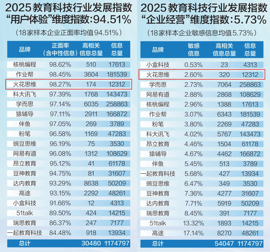 2025教育科技行業(yè)發(fā)展指數(shù)發(fā)布 火花思維位居“用戶體驗(yàn)”“企業(yè)經(jīng)營(yíng)”兩大維度前三
