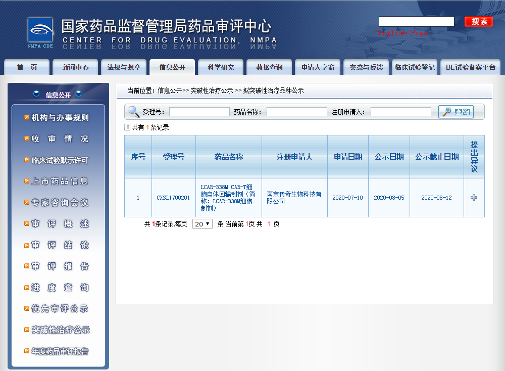 這是NMPA發(fā)布《突破性治療藥物審評工作程序》文件后,“突破性治療公示”專欄的首次更新,這也意味著這項特殊審評通道正式在中國啟動。