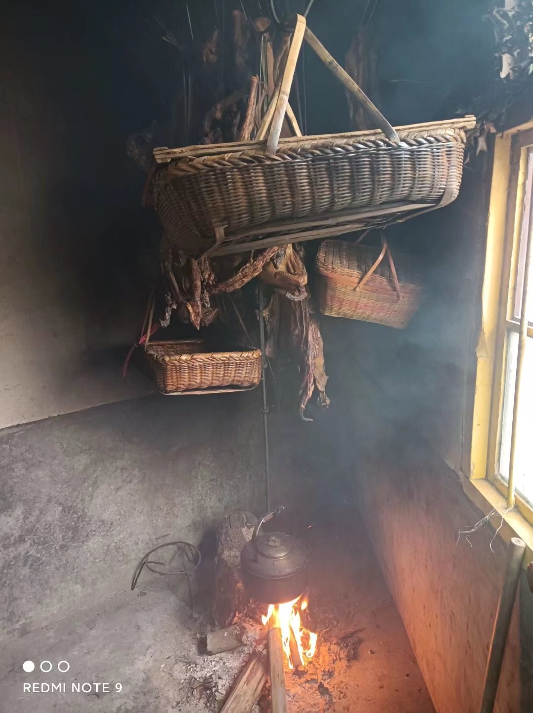 火塘上掛滿山里的土豬土雞(攝影:肖偉)