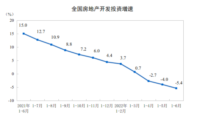前6個月全國房地產(chǎn)開發(fā)投資下降5.4%