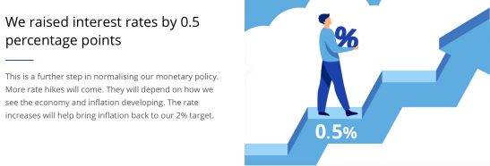 歐洲央行的主要存款利率過(guò)去8年一直為負(fù),此次加息主要是為應(yīng)對(duì)歐元區(qū)日益嚴(yán)重的通脹現(xiàn)象。