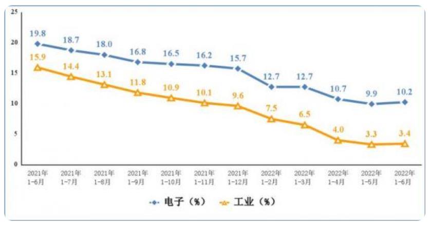 電子信息制造業(yè)和工業(yè)增加值累計增速(圖片來源:工信部官方微信號)