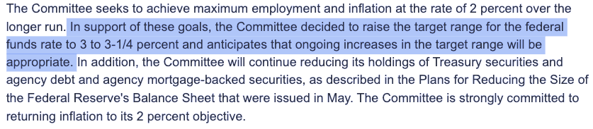 本次加息幅度符合市場(chǎng)預(yù)期?!蹲C券日?qǐng)?bào)》記者發(fā)現(xiàn),F(xiàn)OMC9月份會(huì)議聲明仍然強(qiáng)調(diào)了美國當(dāng)前通脹居高不下的問題,稱新冠疫情、高漲的食品和能源價(jià)格、以及更大范圍的物價(jià)壓力都導(dǎo)致了當(dāng)前的供需失衡。