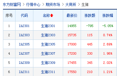 生豬期貨各月份合約陸續(xù)走高(供圖:東方財(cái)富)