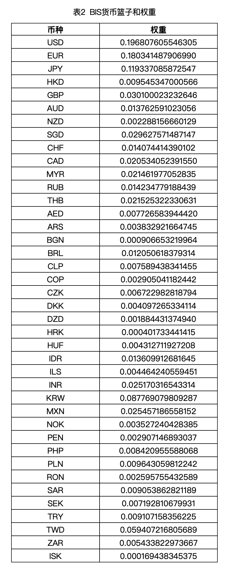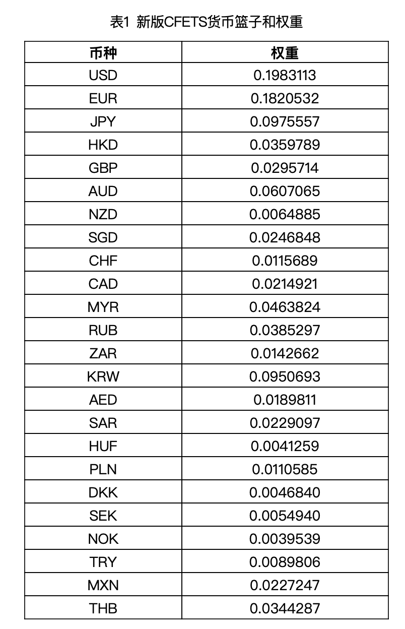 二是保持BIS貨幣籃子和權(quán)重不變。國際清算銀行(BIS)自2019年4月份以來未調(diào)整匯率指數(shù)的貨幣籃子及權(quán)重,故交易中心繼續(xù)保持BIS貨幣籃子人民幣匯率指數(shù)的貨幣籃子和權(quán)重不變。