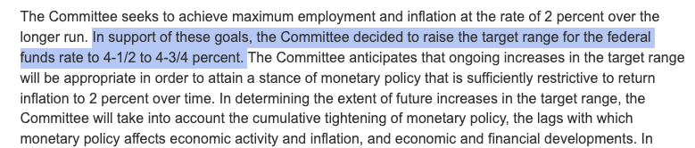 白雪進(jìn)一步分析道,結(jié)合聲明以及鮑威爾在新聞發(fā)布會(huì)上的發(fā)言來看,美聯(lián)儲(chǔ)認(rèn)為通脹已初步形成回落趨勢,且首次提及“反通脹”進(jìn)程,這表明美聯(lián)儲(chǔ)對(duì)通脹的態(tài)度已有明顯軟化。加之聲明中強(qiáng)調(diào),未來利率上調(diào)的“程度”(而非此前的“速度”)將取決于包括貨幣政策緊縮的累積影響,意味著美聯(lián)儲(chǔ)加息周期可能進(jìn)入最后階段。