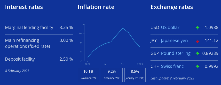 據(jù)新華財經消息,北京時間2月2日晚,歐洲央行召開貨幣政策會議,決定將三大主要利率均上調50個基點,將于當?shù)貢r間2月8日開始生效。當日早些時候,美聯(lián)儲與英國央行也分別公布了2月份貨幣政策決議,其中美聯(lián)儲再度放慢加息節(jié)奏,由前次加息50個基點縮窄至加息25個基點,而英國央行則保持了50個基點的加息幅度。