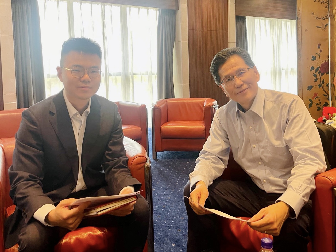 《證券日報》記者專訪中歐國際工商學(xué)院教授朱天(右)