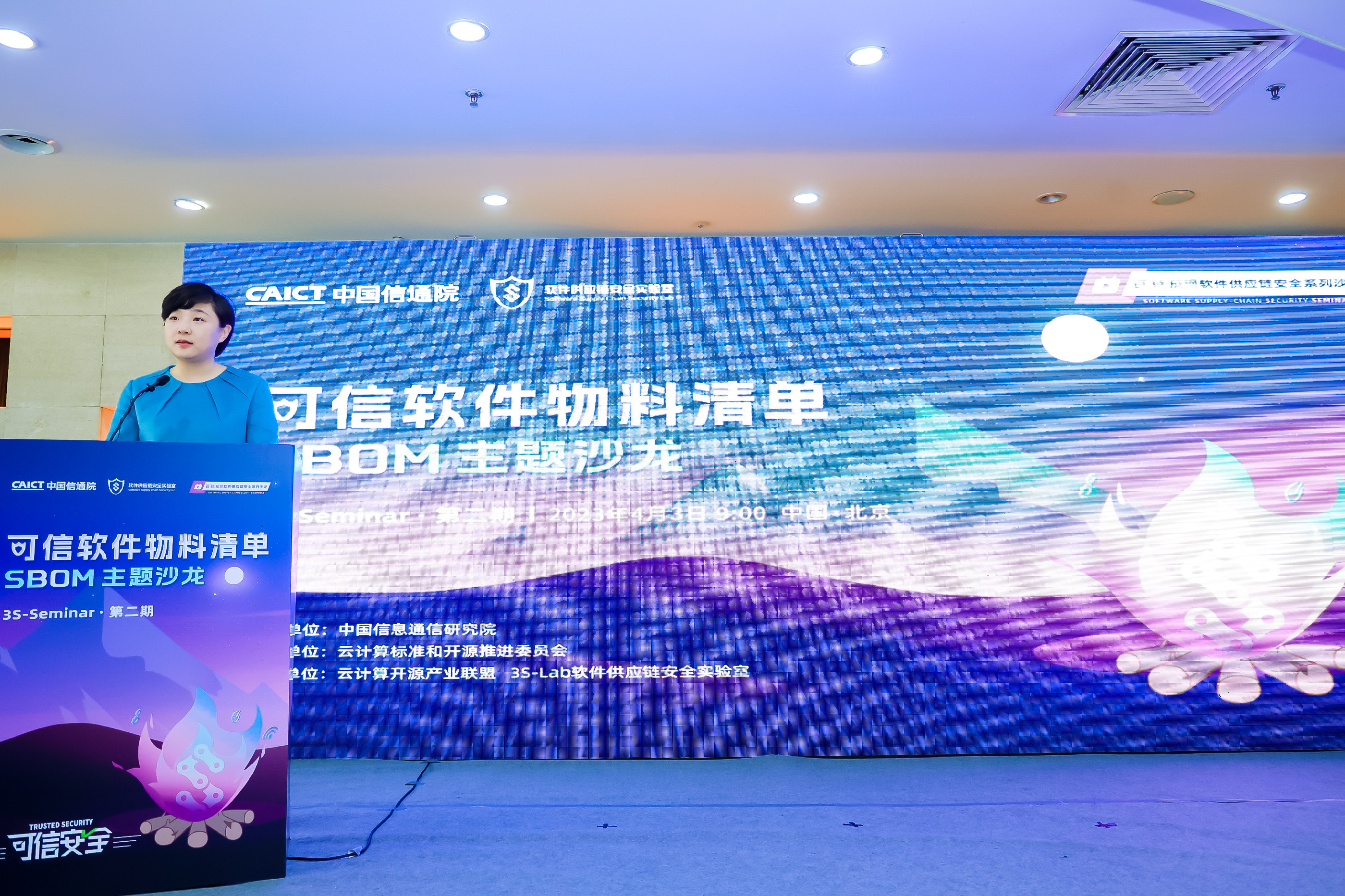 中國信通院云大所開源和軟件安全部郭雪主任發(fā)布了“可信軟件物料清單(SBOM)深度洞察”,全面分析了軟件物料清單發(fā)展歷程,洞察產(chǎn)業(yè)現(xiàn)狀,幫助企業(yè)更好地將軟件物料清單引入軟件供應(yīng)鏈安全建設(shè)中。她表示,未來中國信通院將繼續(xù)推進(jìn)軟件物料清單技術(shù)、應(yīng)用等相關(guān)研究,完善軟件供應(yīng)鏈安全標(biāo)準(zhǔn)體系和系列評估。