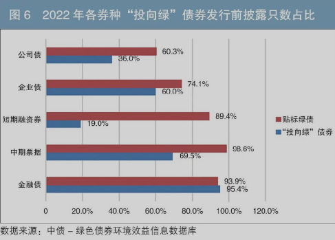 從綠債環(huán)境效益信息披露情況看,《報告》指出,參考中債綠色指標體系,根據(jù)中債-綠色債券環(huán)境效益信息數(shù)據(jù)庫(以下簡稱“中債綠債數(shù)據(jù)庫”)的綠債發(fā)行前環(huán)境效益信息數(shù)據(jù)統(tǒng)計,2022年我國公開發(fā)行“投向綠”債券964只,在發(fā)行前階段披露環(huán)境效益信息的有514只,披露只數(shù)占比為53.3%。公開發(fā)行貼標綠債391只,在發(fā)行前階段披露環(huán)境效益信息的有331只,披露只數(shù)占比為84.7%。在“投向綠”債券中,金融債的披露只數(shù)占比最高,達95%;中期票據(jù)、企業(yè)債券次之,披露只數(shù)占比均超過60%。在貼標綠債中,中期票據(jù)、金融債、短期融資券披露環(huán)境效益的只數(shù)占比較高,均達到90%左右。