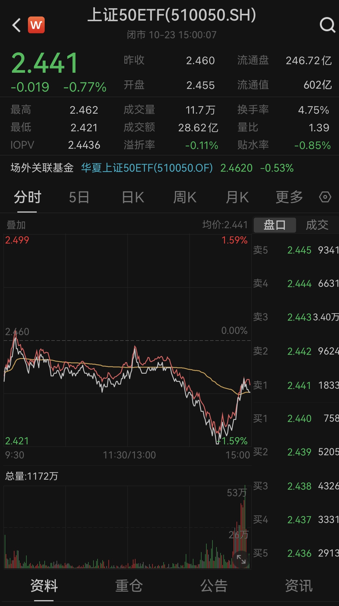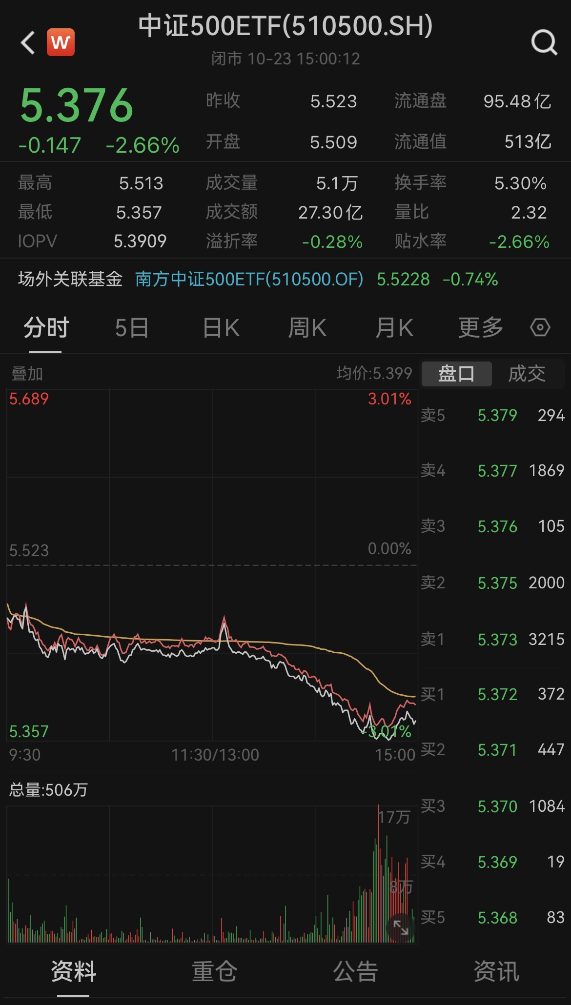 10月23日尾盤,華泰柏瑞滬深300ETF、南方中證500ETF、華夏上證50ETF等多只ETF成交量突然放大。