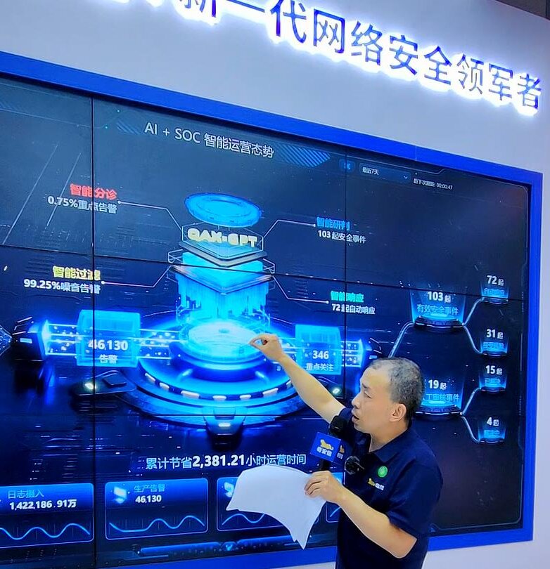 人工智能(AI)技術(shù)的迭代升級,驅(qū)動了傳統(tǒng)安全運營從“密集型”向“智慧型”升級。已經(jīng)多次參展的奇安信,此次展示了“AI+SOC智能安全運營方案”。