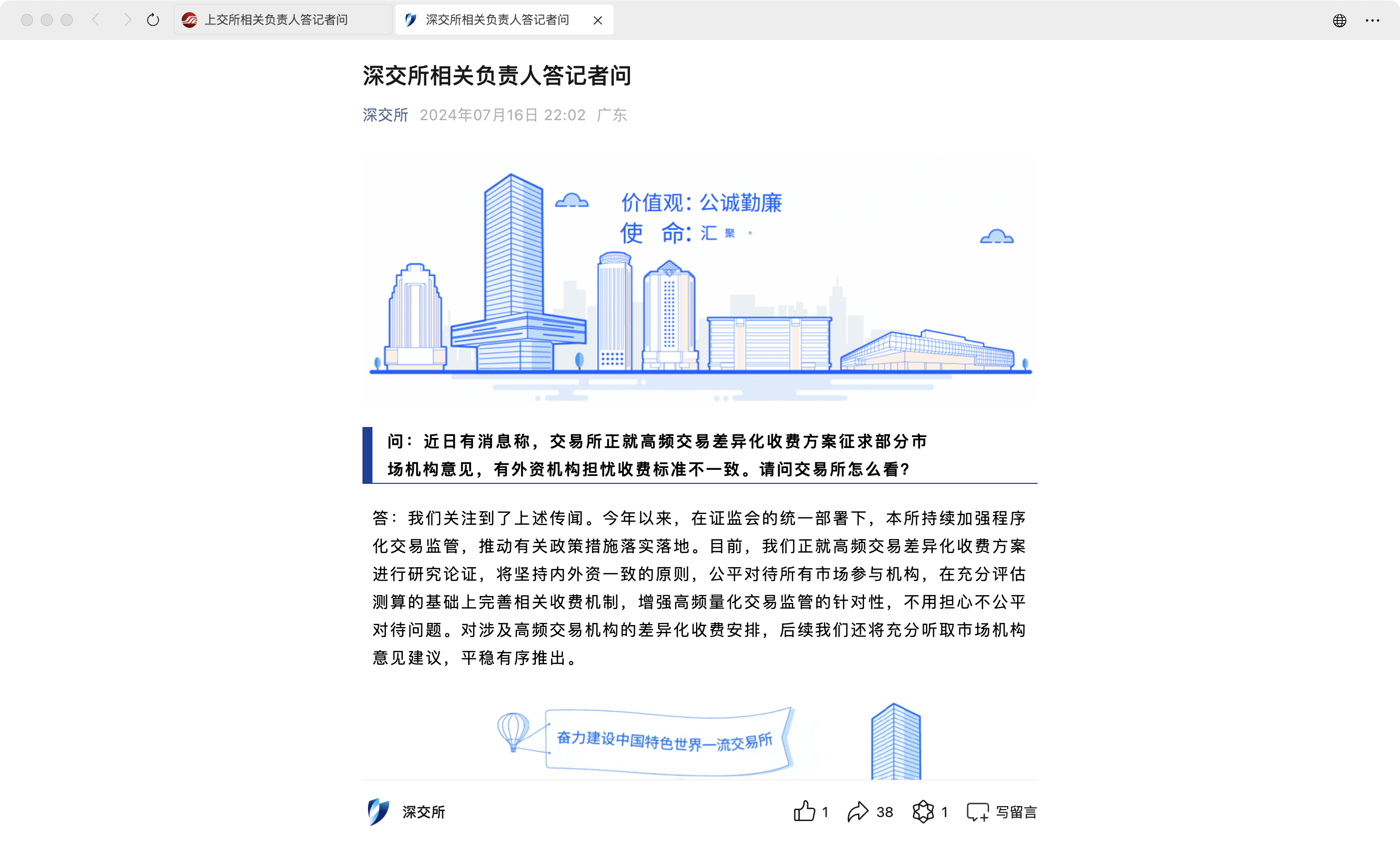 對涉及高頻交易機構的差異化收費安排,滬深交易所表示,后續(xù)還將充分聽取市場機構意見建議,平穩(wěn)有序推出。