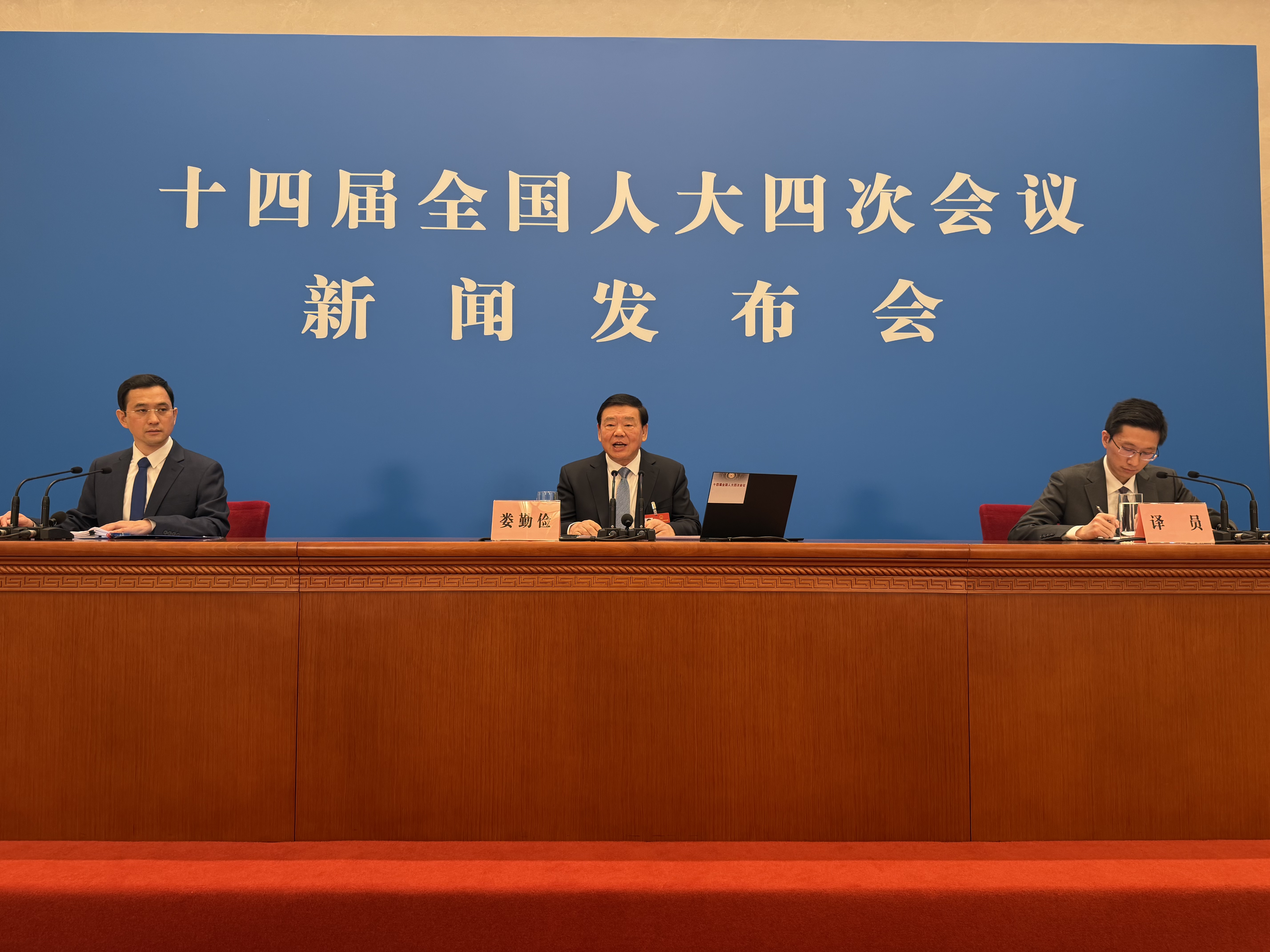 3月4日,十四屆全國(guó)人大四次會(huì)議在人民大會(huì)堂舉行新聞發(fā)布會(huì)。大會(huì)發(fā)言人婁勤儉就大會(huì)議程和人大工作相關(guān)問(wèn)題回答中外記者提問(wèn)。