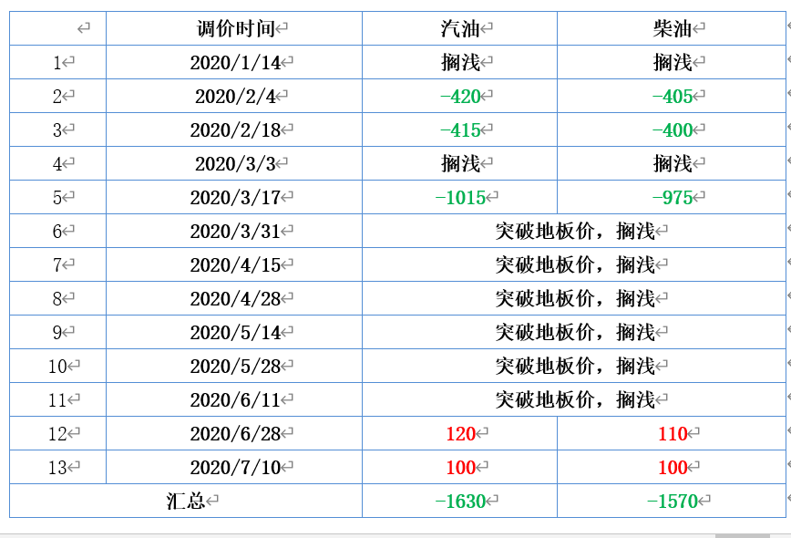 據(jù)統(tǒng)計(jì),經(jīng)過本次上調(diào)之后,2020年國內(nèi)成品油零售限價(jià)共歷經(jīng)13次調(diào)整,其中3次下調(diào)、2次擱淺、2次上調(diào),6次不作調(diào)整。漲跌互抵之后,汽油累積下調(diào)1630元/噸,柴油累積下調(diào)1570元/噸,折升價(jià)92#汽油下調(diào)1.28元/升,柴油下調(diào)1.34元/升。