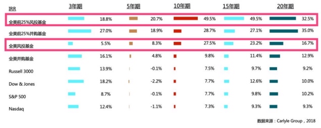 如上圖所示,全美前25%風(fēng)投基金10年期的平均收益率能達到49.5%,而全美風(fēng)投基金10年期的平均收益率為27.5%,僅為前者的55%。在同一投資類別里,分散投資到若干個排名靠后的基金,并沒有降低了風(fēng)險,相反是集中了風(fēng)險。