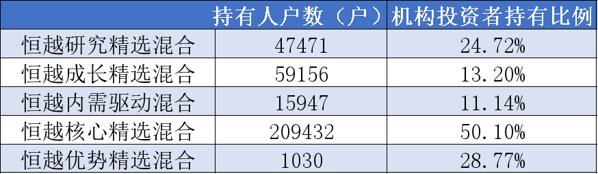 以下為恒越基金旗下5只混合型基金的持有人結(jié)構(gòu)情況:
