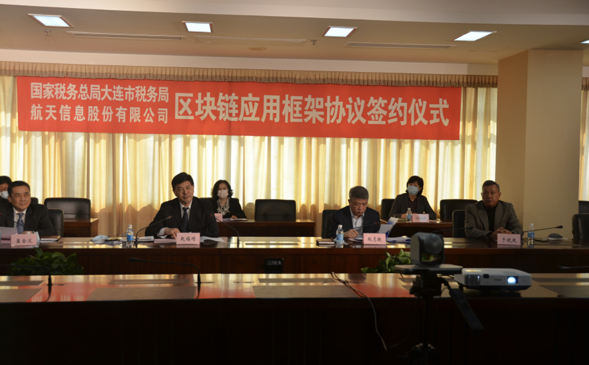 2020年4月9日,航天信息股份有限公司與國家稅務(wù)總局大連市稅務(wù)局簽署區(qū)塊鏈應(yīng)用框架合作協(xié)議。雙方充分響應(yīng)疫情防控期間“不聚集、不見面、零接觸”號(hào)召,采用遠(yuǎn)程視頻方式進(jìn)行協(xié)議簽署。