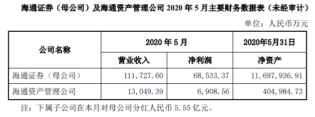 目前來(lái)看,海通證券5月份凈利潤(rùn)領(lǐng)先,為7.54億元。海通證券月報(bào)顯示,下屬子公司在5月份對(duì)母公司分紅5.55億元。