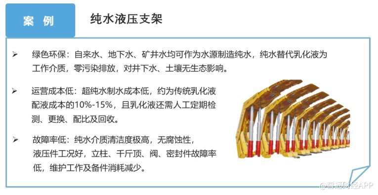 記者從公司了解到,公司主推的綠色環(huán)保產(chǎn)品純水液壓支架,以純水液壓代替?zhèn)鹘y(tǒng)乳化液配液,填補了國內(nèi)外綜采工作面使用純水介質(zhì)的空白。自來水、地下水、礦井水均可作為水源制造純水,真正實現(xiàn)零污染排放,對井下水、土地生態(tài)亦不產(chǎn)生影響,符合國家環(huán)保政策要求。公司的這款綠色、環(huán)境友好型的產(chǎn)品不僅減少了因煤炭開采對生態(tài)的影響,實現(xiàn)了乳化液零消耗、井下水資源零污染,而且還降低了煤炭開采成本,控制了零部件故損率,延長了液壓支架使用壽命,提高了生產(chǎn)效率。