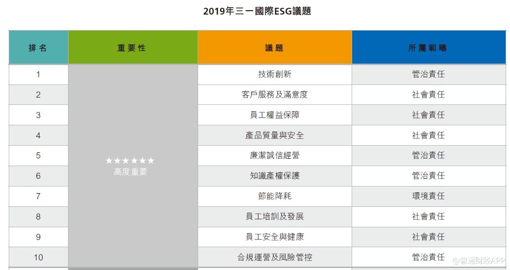 “2019是新中國成立70周年,也是三一國際持續(xù)奮進,實現(xiàn)跨越式發(fā)展的一年。在我國經(jīng)濟整體保持穩(wěn)健增長的大環(huán)境下,三一國際經(jīng)營業(yè)績穩(wěn)中向好,內(nèi)部管理經(jīng)營效率和盈利能力大幅提高,各主打產(chǎn)品市場占有率逐步提升。”在6月23日披露的ESG報告中,三一國際表示在不斷優(yōu)化資產(chǎn)結(jié)構(gòu),提升業(yè)務(wù)表現(xiàn)的同時,公司持續(xù)關(guān)注企業(yè)的可持續(xù)發(fā)展表現(xiàn),積極溝通、傾聽利益相關(guān)方的意見與建議,不斷加強對于自身環(huán)境、社會及管治方面的管理,用匠心打造優(yōu)質(zhì)產(chǎn)品,懷著“質(zhì)量改變世界”的初心,始終將產(chǎn)品的質(zhì)量與安全視為產(chǎn)品責任的核心。