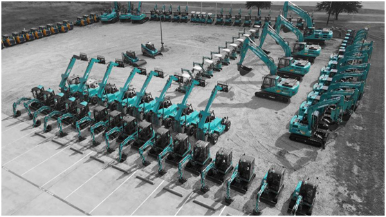 在美國得州大雪天氣下山河智能產(chǎn)品整齊劃一準(zhǔn)備交付(供圖:山河智能)