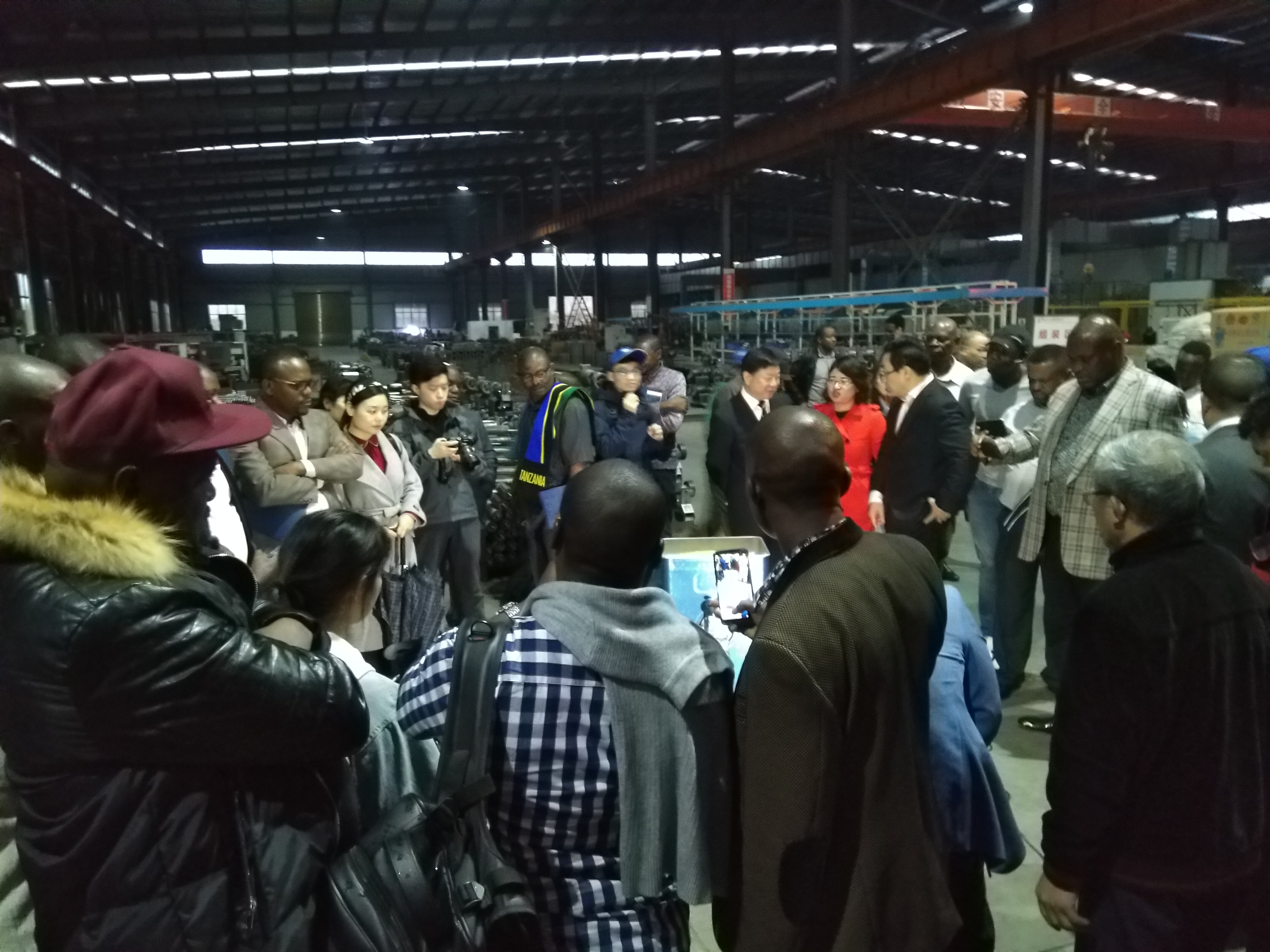來自非洲的客商們正在觀看勁松機械的設(shè)備演示(供圖:勁松機械)