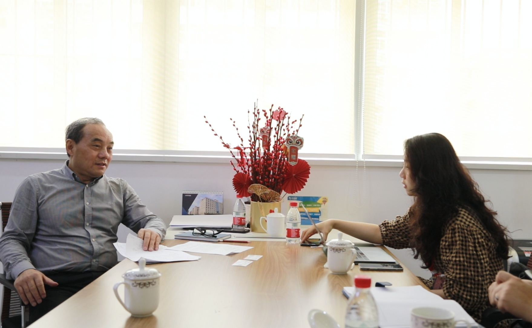 歐陸通董事長王合球(左)正在接受證券日報記者專訪,供圖/公司