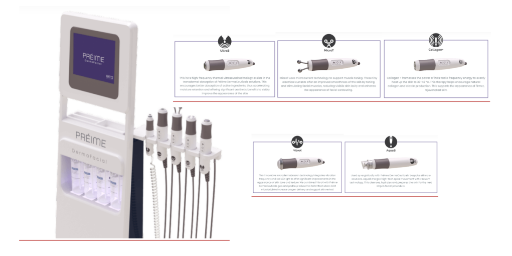 華東醫(yī)藥此次引進(jìn)的Préime DermaFacial是一款集螺旋真空、微晶磨皮、微電流、射頻、超聲五種先進(jìn)技術(shù)為一體的多功能面部皮膚管理平臺(tái)。該產(chǎn)品配備有AquaB、VibroX、MicroT、Collagen+、UltraB五個(gè)手柄,搭配專(zhuān)屬護(hù)理產(chǎn)品和治療頭使用,可針對(duì)不同客戶需求定制個(gè)性化護(hù)理方案。隨著非入侵式護(hù)膚設(shè)備與醫(yī)美項(xiàng)目聯(lián)用成為行業(yè)熱門(mén)趨勢(shì)與共識(shí),Préime DermaFacial面臨廣闊的市場(chǎng)推廣和運(yùn)用空間。