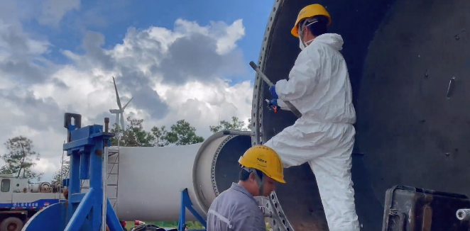 時(shí)代新材是國內(nèi)風(fēng)電葉片主力供方之一,位于風(fēng)電葉片第一方陣。在夏季用電高峰期到來之際,風(fēng)電產(chǎn)品事業(yè)部組成專門班組,驅(qū)車前往湖南山區(qū)現(xiàn)場安裝調(diào)試風(fēng)電設(shè)備,現(xiàn)場工程師們加緊趕工,執(zhí)行兩班倒作業(yè)任務(wù)。