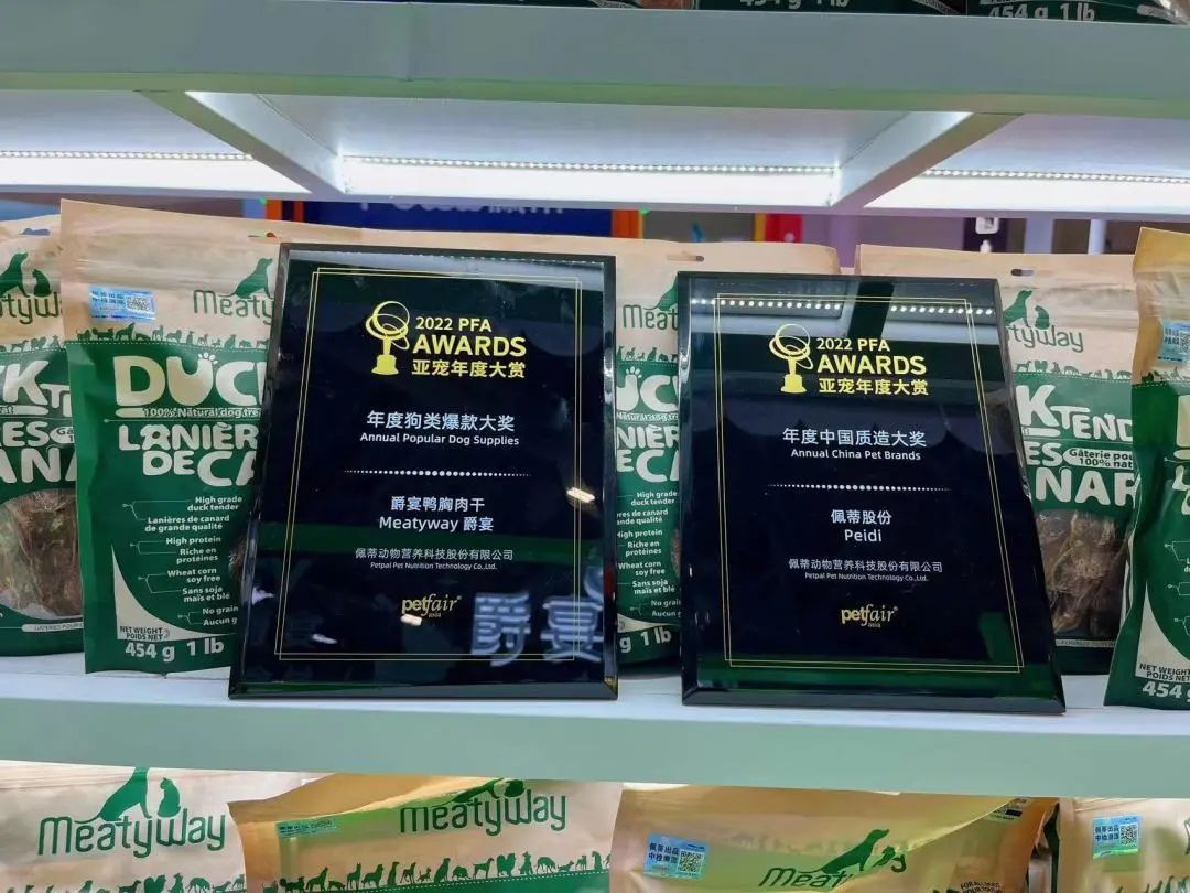 本次2022PFAAWARDS亞寵年度大賞共發(fā)布10大獎(jiǎng)項(xiàng)榜單,其中佩蒂股份及旗下品牌上榜3大獎(jiǎng)項(xiàng):