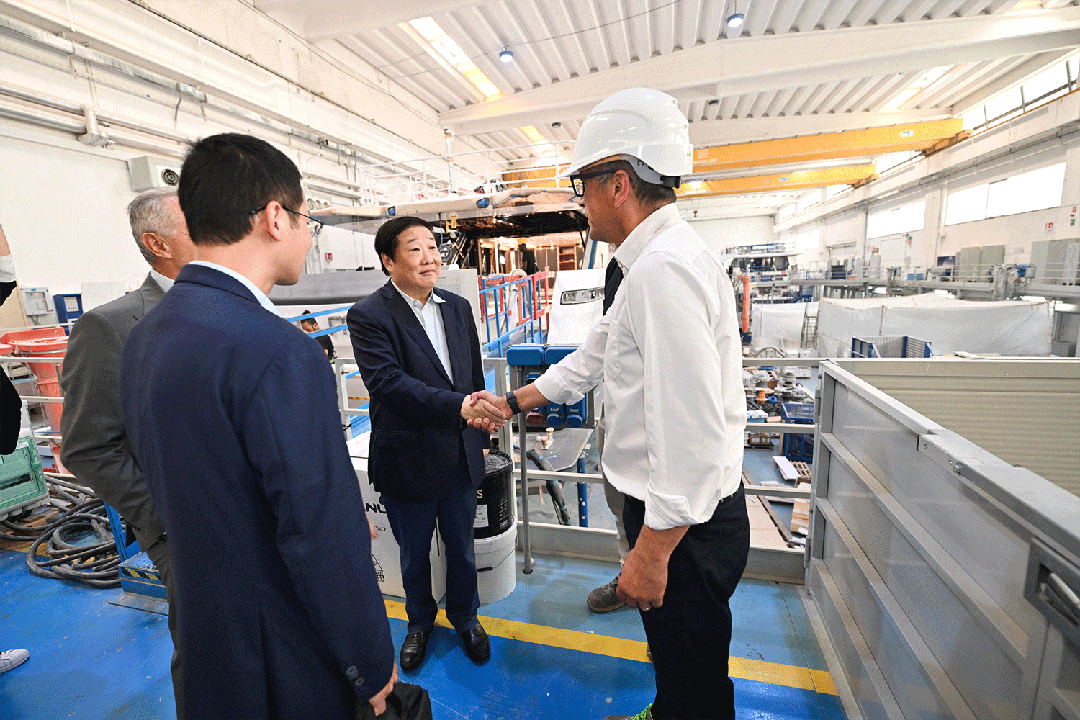 9月11日,譚旭光在意大利馬爾凱大區(qū)首府安科納市,調(diào)研濰柴集團旗下法拉帝集團超級游艇生產(chǎn)制造基地安科納工廠,詳細了解近幾年CRN、CUSTOM LINE游艇生產(chǎn)情況。