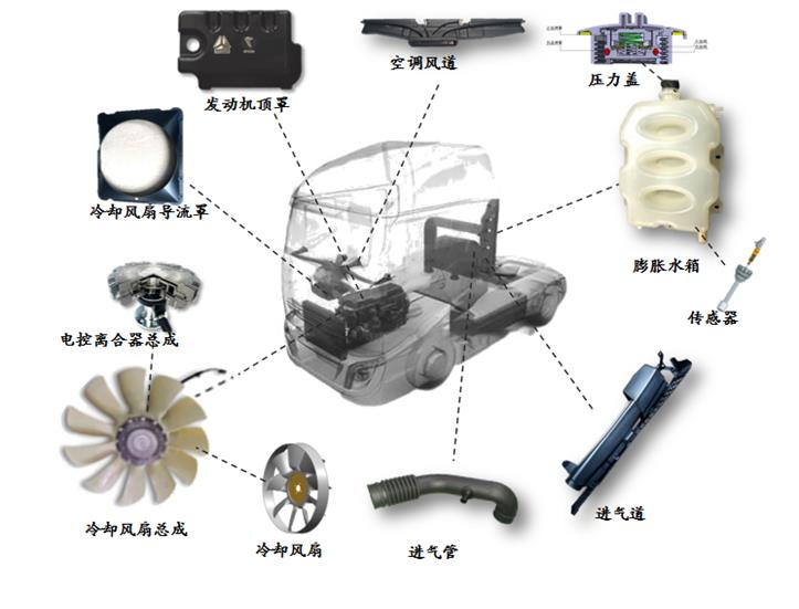 近年來(lái),公司圍繞“節(jié)能環(huán)保”產(chǎn)品發(fā)展理念,不斷進(jìn)行全球國(guó)際化戰(zhàn)略布局,主要產(chǎn)品包括:商用車熱管理相關(guān)的冷卻風(fēng)扇總成、硅油離合器風(fēng)扇總成、電控硅油離合器風(fēng)扇總成等;工程機(jī)械熱管理相關(guān)的冷卻風(fēng)扇總成、硅油離合器風(fēng)扇總成等;農(nóng)業(yè)機(jī)械熱管理相關(guān)的冷卻風(fēng)扇總成、硅油離合器風(fēng)扇總成等;汽車輕量化相關(guān)的膨脹水箱、護(hù)風(fēng)罩、發(fā)動(dòng)機(jī)進(jìn)氣管、空調(diào)出風(fēng)管等。公司推出節(jié)能型無(wú)級(jí)變速電控離合器風(fēng)扇總成產(chǎn)品,開發(fā)新能源商用車熱管理系統(tǒng)低壓電子風(fēng)扇總成、高壓電子風(fēng)扇總成。