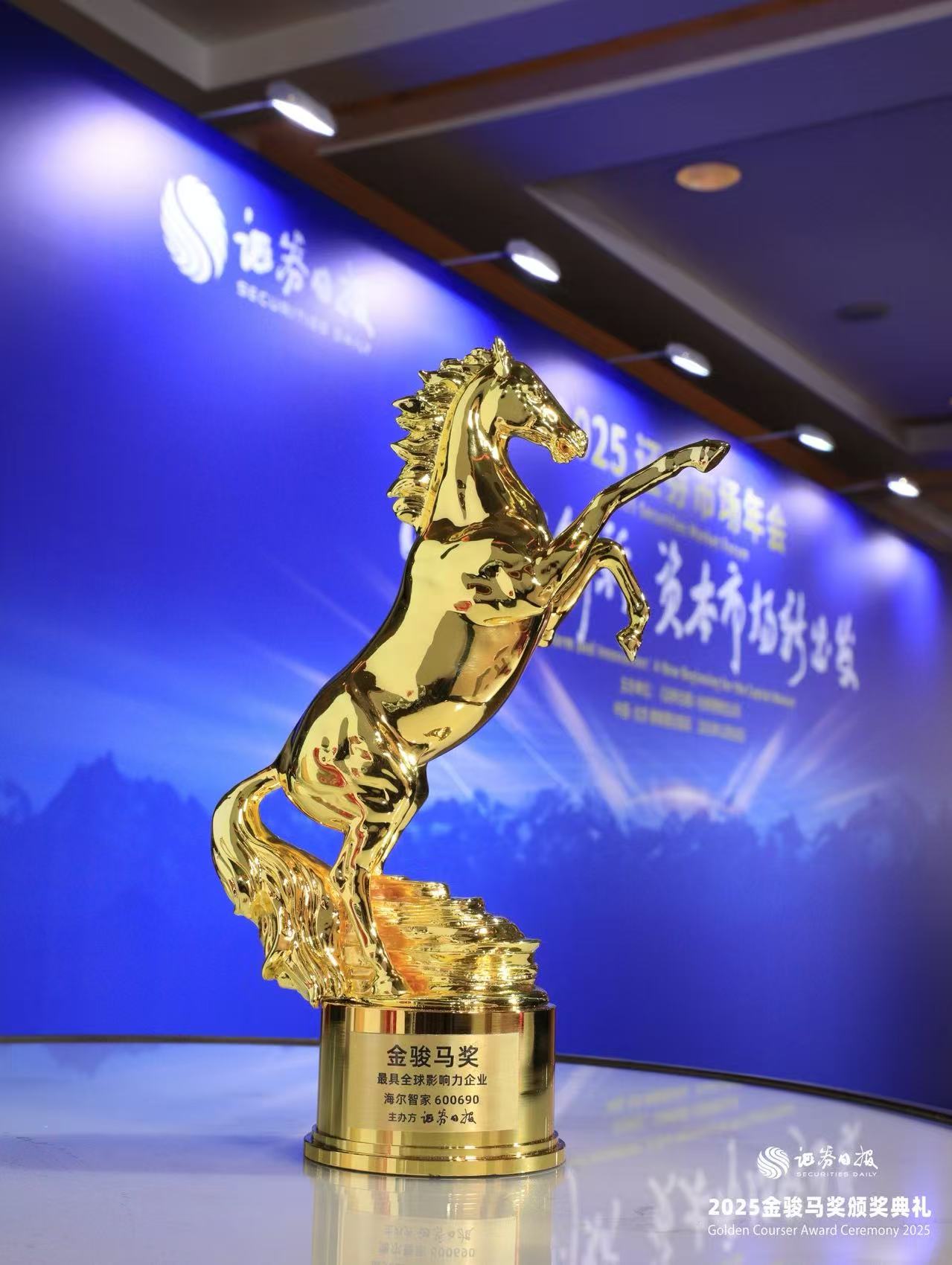 本報訊 (記者劉釗)12月26日,由《證券日報》社有限責(zé)任公司主辦的“2025證券市場年會”在北京香格里拉飯店舉行。作為年會的重要組成部分,2025金駿馬獎頒獎典禮對在推動資本市場穩(wěn)健運(yùn)行和高質(zhì)量發(fā)展方面作出突出貢獻(xiàn)的機(jī)構(gòu)與個人予以表彰。憑借突出的全球化經(jīng)營成果、持續(xù)的技術(shù)創(chuàng)新能力、完善的產(chǎn)業(yè)布局以及不斷提升的品牌影響力,海爾智家榮獲“2025年度金駿馬最具全球影響力企業(yè)獎”。