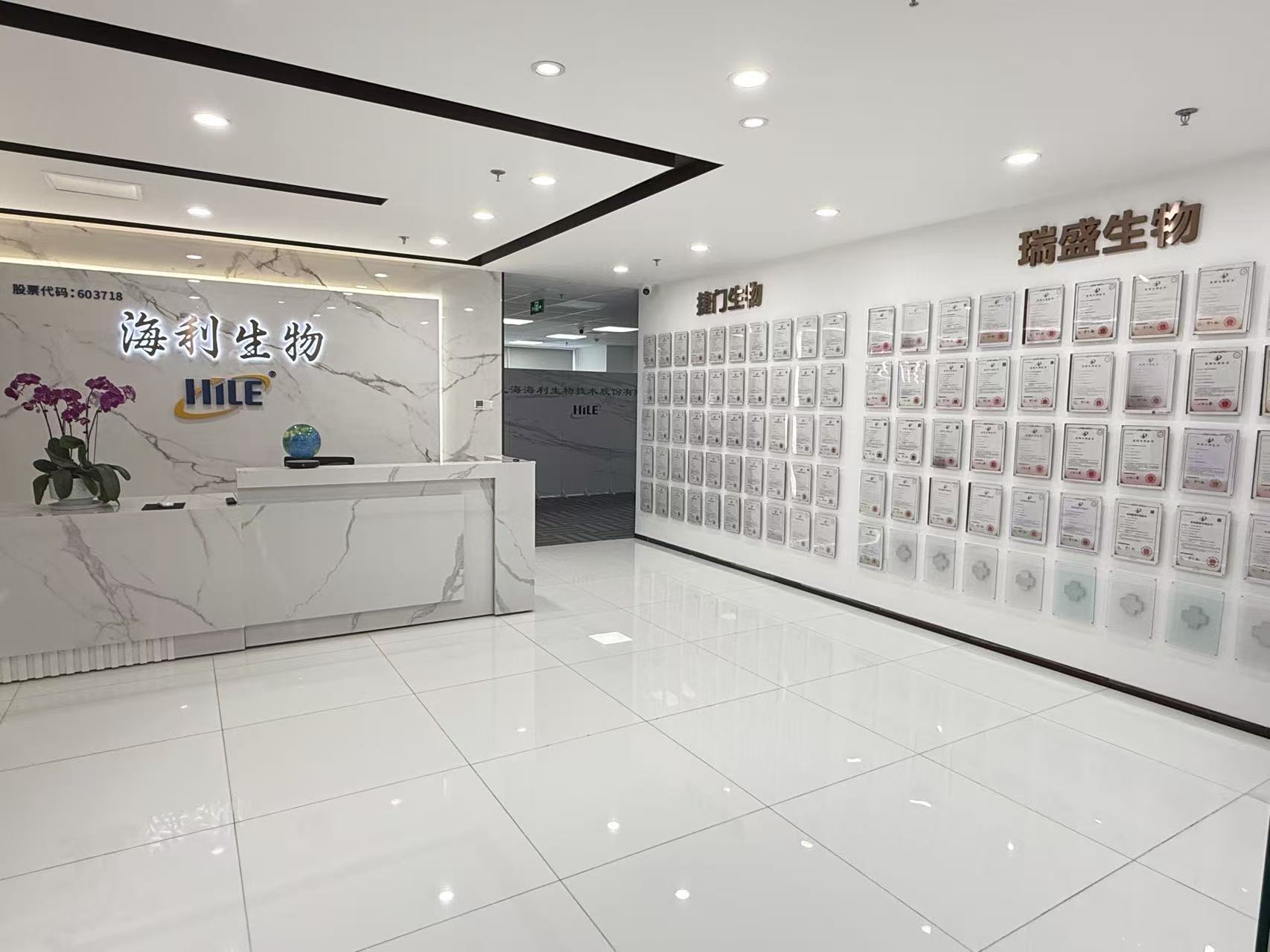 海利生物的總部位于上海黃浦區(qū)淮海中路的某寫字樓八樓。記者在現(xiàn)場看到,海利生物的辦公室外墻上掛滿了各類專利。該公司的董事兼總經(jīng)理韓本毅、董事會秘書浦冬嬋接受了《證券日報》記者的采訪。